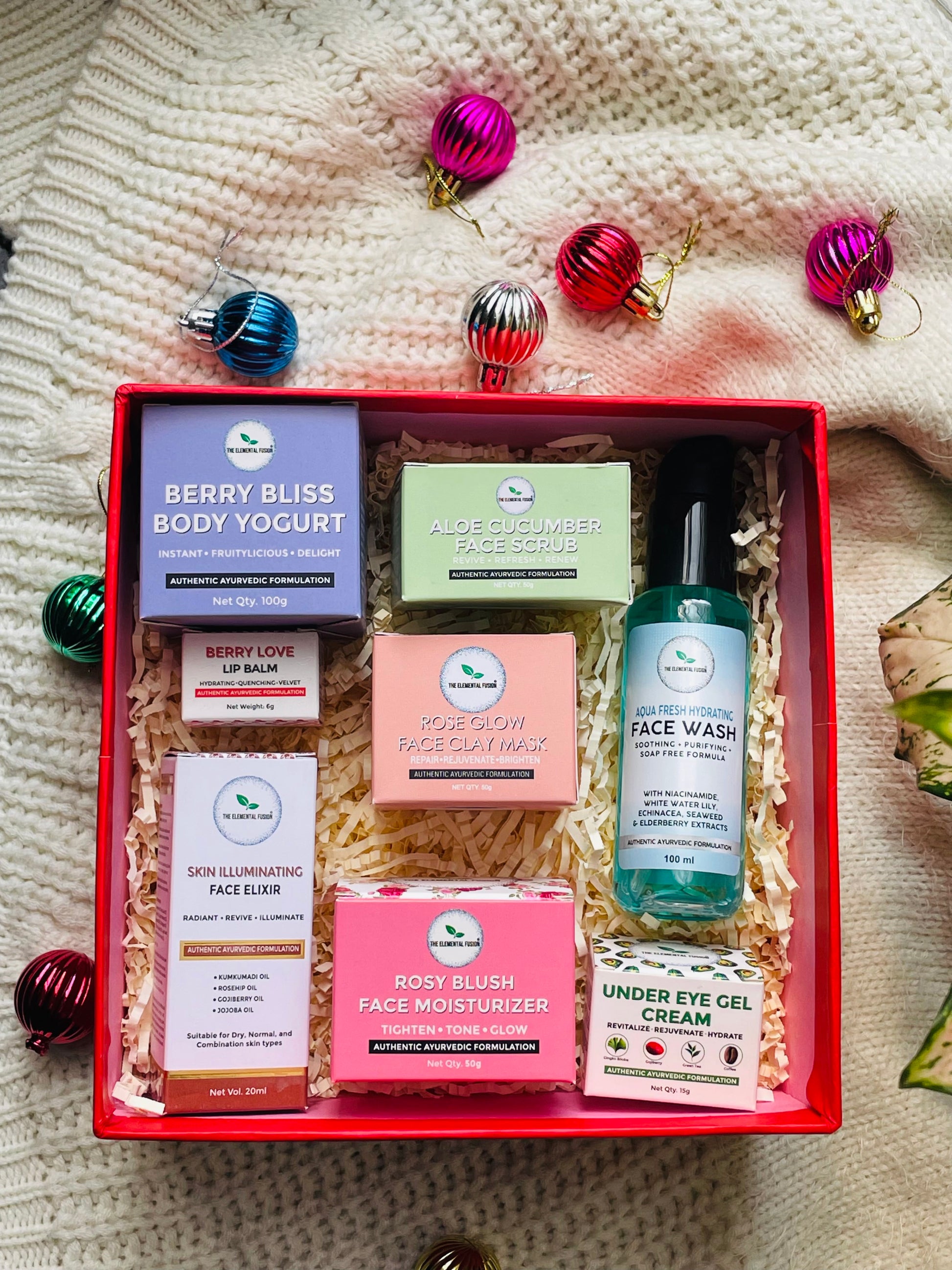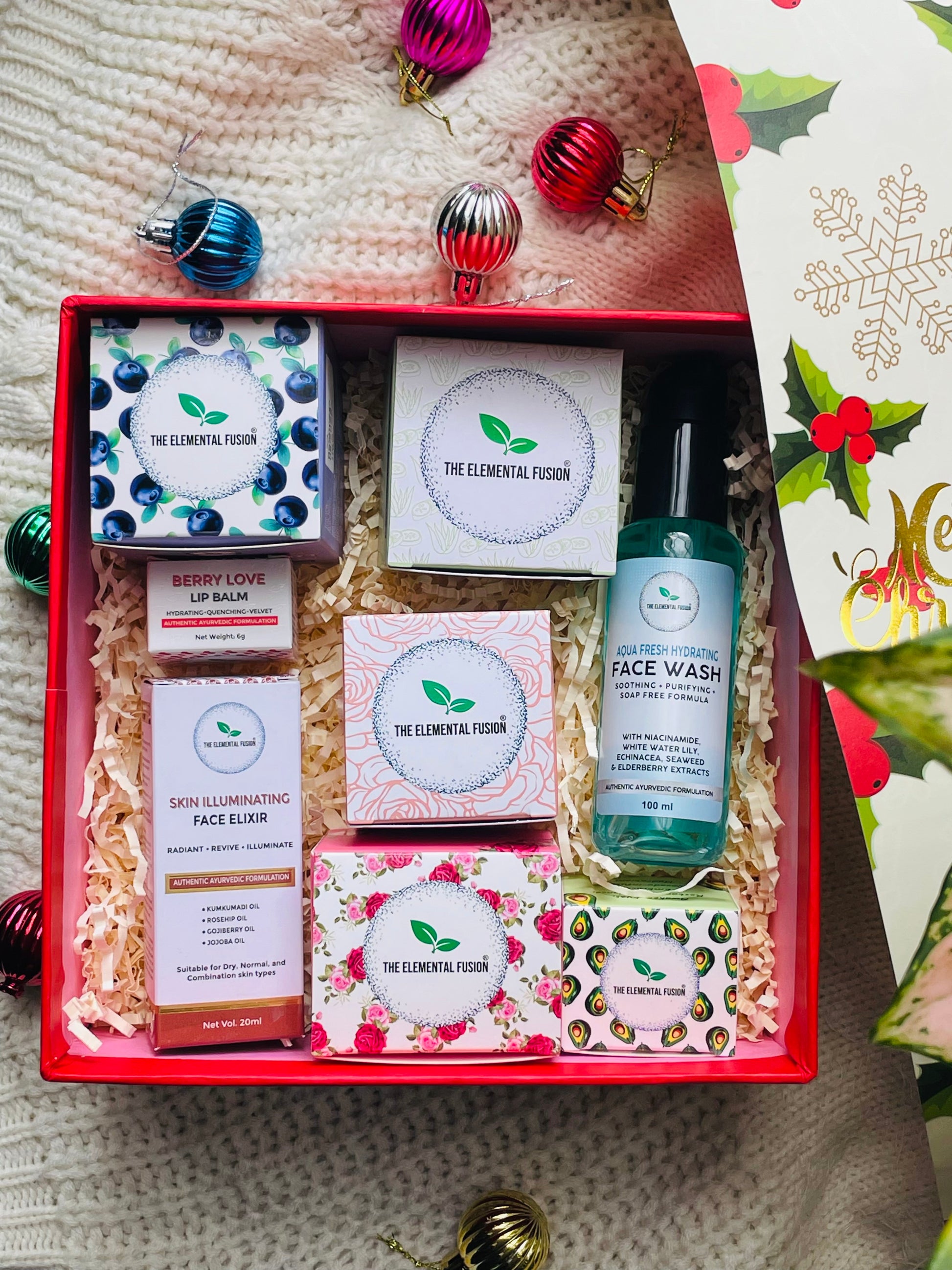 🎄 Unwrap the Magic, Embrace the Glow: This holiday season, elevate your gifting game with the Merry Crimson Glow Ensemble Gift Hamper. Unwrap the magic, embrace the glow, and gift a symphony of self-care that transcends ordinary gifting, making this Christmas unforgettable for your loved ones. Because every moment of indulgence is a celebration of love and luminosity.